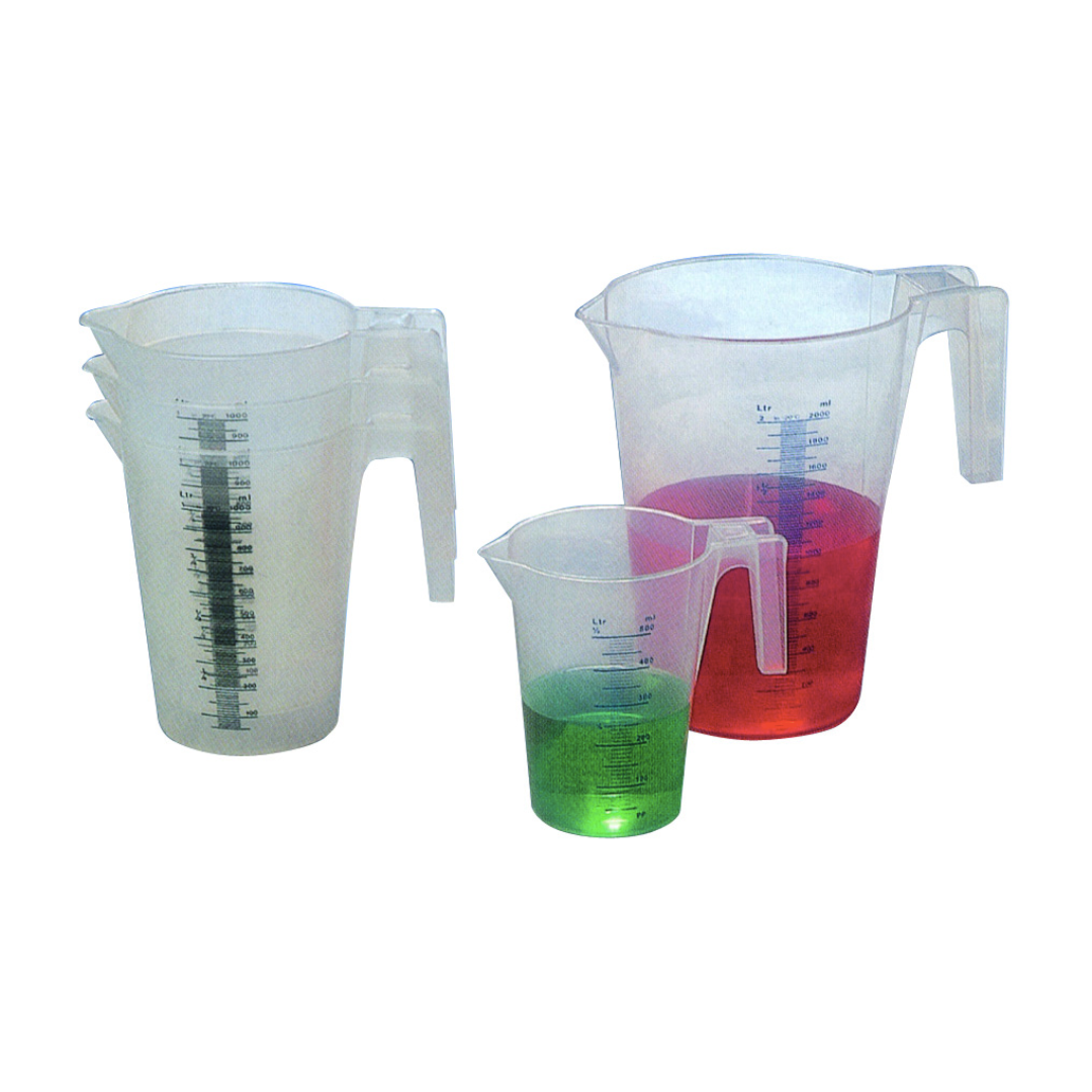 Découvrez le pot gradué en plastique, idéal pour mesurer les liquides. Facile d’utilisation grâce à sa poignet et équipé d’un bec verseur.
