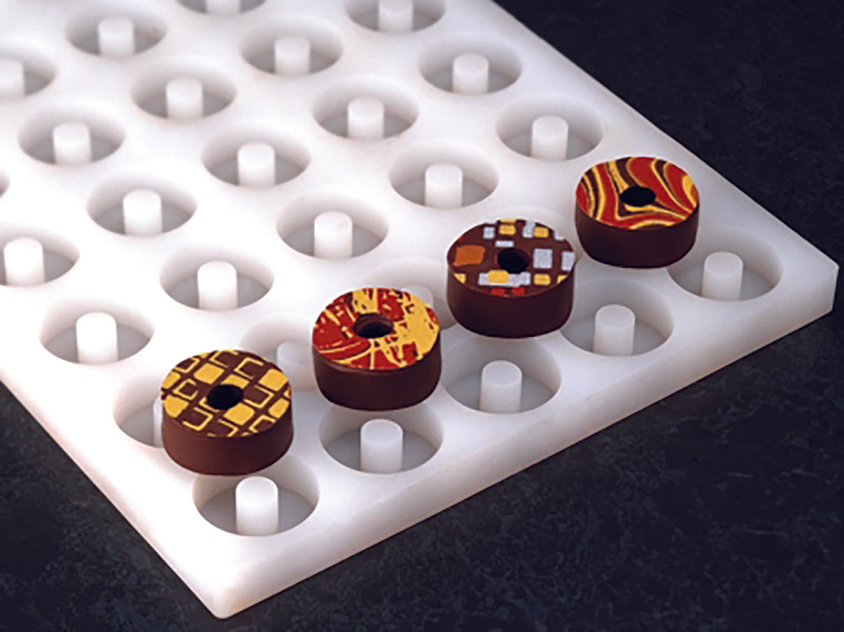 Moules en silicone en forme de ronds creux. Véritable innovation, les moules Chocoflex thermorésistants permettent de mouler vos chocolats en toute simplicité. Il suffit de couler votre mélange à l'aide d'un entonnoir à piston pour réaliser des coquilles, décorations et autres moulages de chocolats.