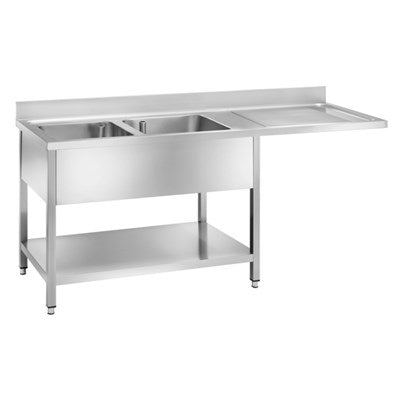Plonge double avec égouttoir suspendu pour logement lave-batterie